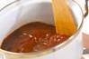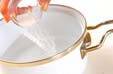 水に粉寒天を加え、よく混ぜて溶かす。火にかけて更に混ぜながら煮溶かす。