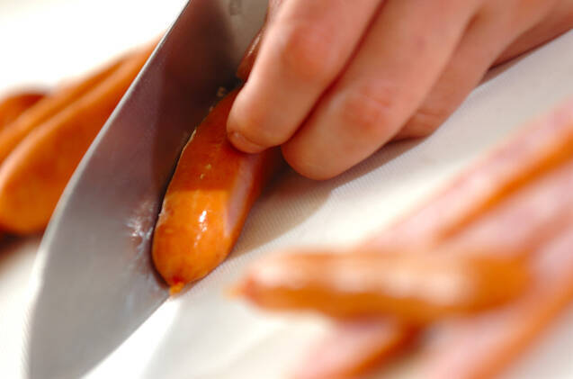 ソーセージは縦半分に切る。
