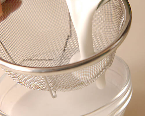 イモクズと水をよく混ぜ合わせ、網を通しておく。