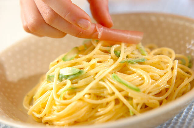 器に(2)を盛って生ハムをのせ、粗びき黒コショウをたっぷり振る。