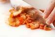 白菜キムチが大きい場合は食べやすい大きさにザク切りにする。