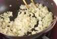 玉ネギはみじん切りにし、バター10gを熱したフライパンでしんなりするまで炒め冷ます。