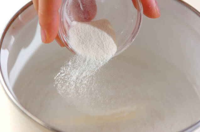 鍋に水、粉寒天を入れてよく混ぜ、強火にかける。煮たったら砂糖を加え、砂糖が溶けたら少し火を弱め、煮たった状態で1分煮る。