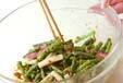 塩を入れた熱湯にササゲを入れ、煮立てば1~2分位ゆでてザルに上げる。