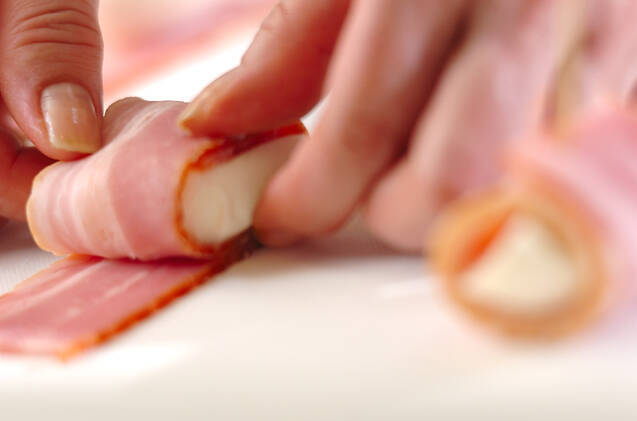 絹ごし豆腐を2~3つに切り、布巾、またはキッチンペーパーに包み、水気をきる。モッツアレラチーズも2~3つに切ってベーコンを巻いて楊枝で留める。オクラは分量外の塩で表面をこすって繊毛を取り、水洗いして水気を拭き取る。<衣>を混ぜ合わせる。<合わせダレ>の材料を合わせてひと煮立ちさせる。