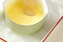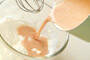とろみがついたら、火から外して氷水にあてる。粗熱が取れたところで、イチゴのピューレを加えて混ぜ合わせる。さらに、立てておいた生クリームのボウルに加え混ぜ合わせる。