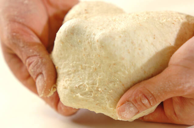 生地を台の上に出し、こねる。表面がなめらかになり、膜がしっかりとはったら、温かいところに置き、約2倍に膨らむまで待つ(25~35分)。