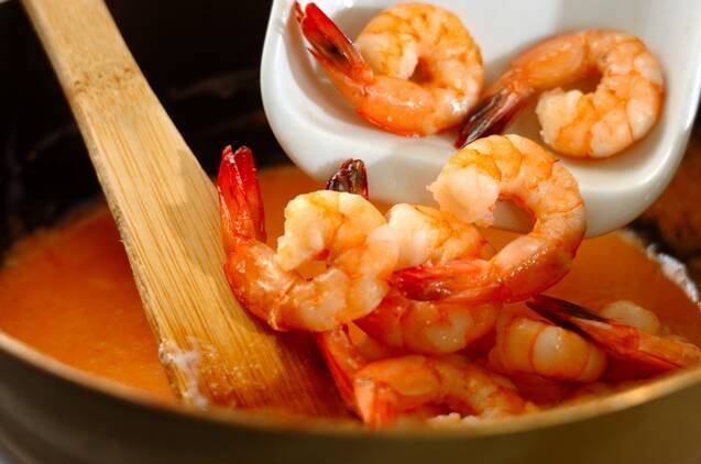 エビの殻を使って本格濃厚スープ「エビのビスク風」