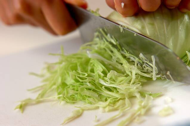 キャベツはせん切りにする。