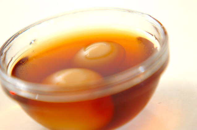 器にウズラの卵を入れ、麺つゆをかぶるぐらい加えて一晩漬ける。
