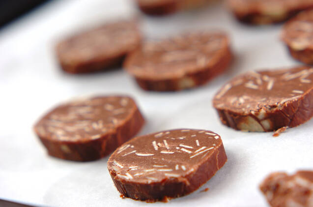 オーブンを180℃に予熱し始める。しっかり冷やしたら、厚さ5~6mmに切り、オーブンシートをしいた天板に重ならないように並べる。180℃に予熱しておいたオーブンで12~15分焼き、ケーキクーラーに並べて冷ます。