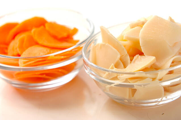 ニンジンは皮をむき、縦半分に切って薄い半月切りにする。