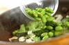 (2)に(1)と枝豆を入れ、炒め合わせる。塩コショウで味を調え、器に盛る。