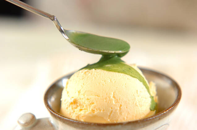 器にバニラアイスを盛り、<抹茶ソース>をかける。