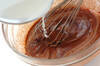 小鍋に牛乳を入れて人肌程度に温め、(1)に少しずつ加えながら静かに混ぜ、こし器で漉す。