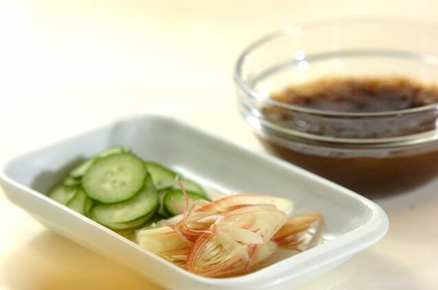 ミョウガは縦薄切りにしてサッと水に放ち、水気を軽く絞る。