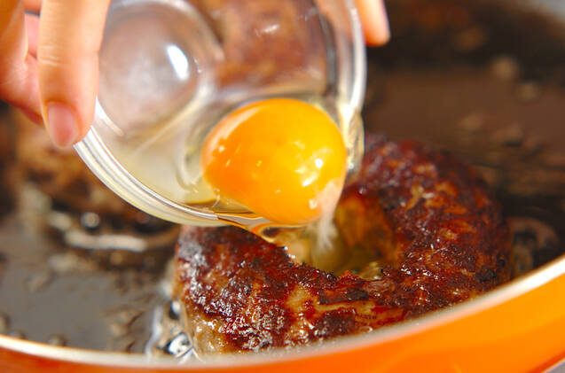 弱火にしてフライパンに蓋をし、3~4分蒸し焼きにする。中まで火が通ったら、中央の穴に卵を割り入れ、再び蓋をしてお好みの半熟加減になるまで蒸し焼きにする。
