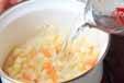 全体に油が回れば<スープ>を加え、煮立てば弱火にして10分煮、塩コショウで味を整える。