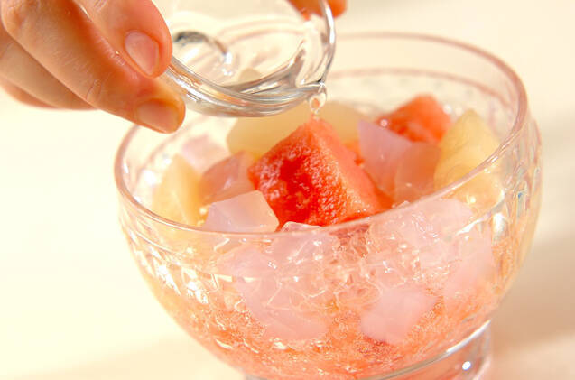 器に冷やした炭酸水を注ぎ入れ、ラム酒を加えてミントの葉を飾る。