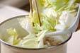 白菜、エノキを加え、煮立ったら<調味料>を入れて全体を混ぜる。鍋の蓋をして10~15分位煮て、野菜がしんなりしたら火を止める。
