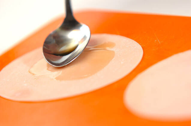 餃子の皮にゴマ油をぬり、ゆで卵、ベーコン、粉チーズをのせてトースターで焼く。焼き色がついたら、ドライパセリを振る。