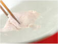 白ネギは小口切りにして水に放ち、軽くもみ洗いして水気を絞る。豚肉は長さ7~8cmに切る。煮たったお湯に、酒、分量外の水100mlを加えてお湯の温度を下げて火を止め、豚肉をひらひら泳がせながら火を通して冷水に放ち、ザルに上げる。