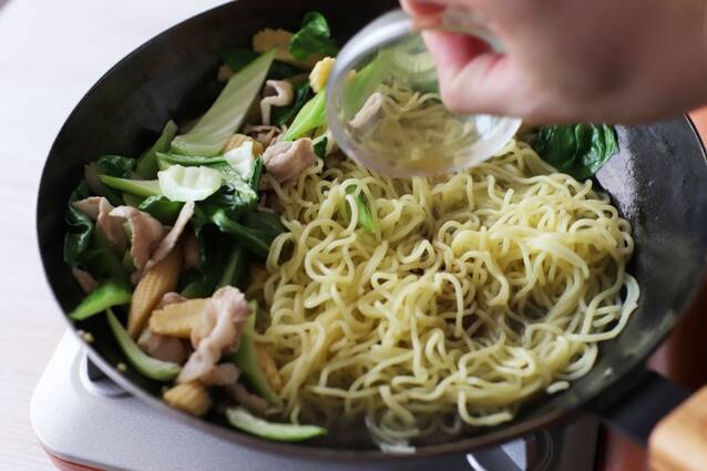 豚バラとチンゲン菜のピリ辛エスニック焼きそば