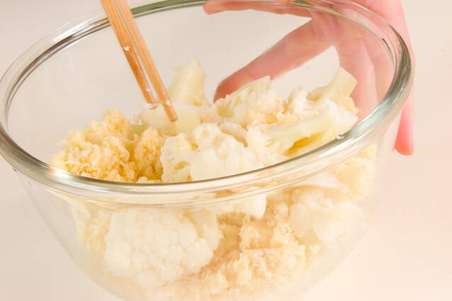 カリフラワーの水気をきり、塩、コショウをして<合わせパン粉>をしっかりつける。