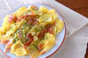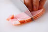 ジャガイモは皮をむいて半分に切り、さらに薄切りにする。