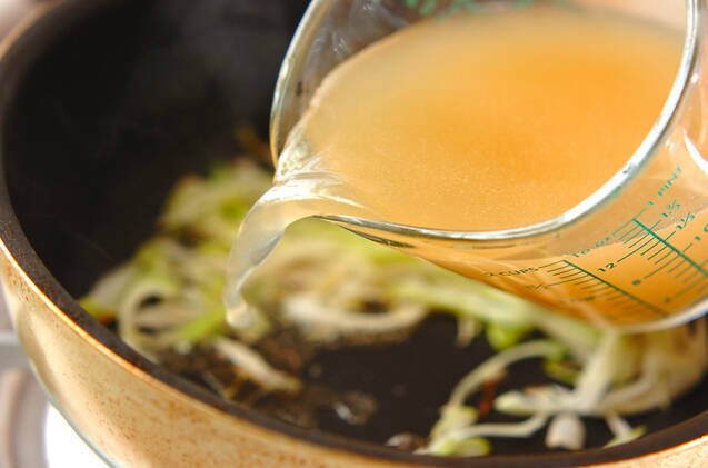 中華鍋にゴマ油、白ネギを入れて強火にかけ、白ネギの香りがたったら、<あん>の材料を加え、ひと煮たちさせる。