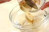 バナナは皮をむいて、食べやすい大きさに切り、<シロップ>につける。
