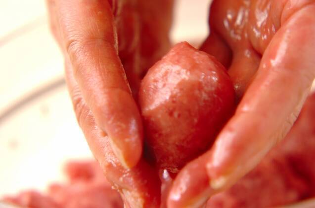 手に分量外のサラダ油を少しつけ、<肉団子>をひとくち大に丸め、170℃の揚げ油に入れて色よく揚げる。
