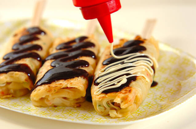 器に盛り、お好み焼きソース、マヨネーズ、青のり、粉かつおを振る。