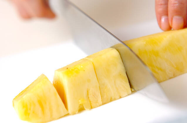 生パイナップルは、ひとくち大に切る。