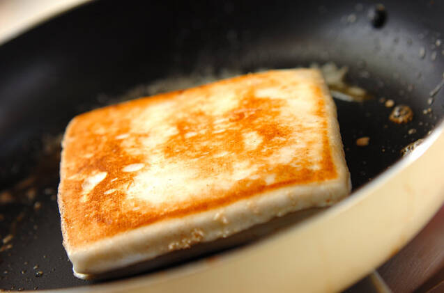フライパンにバターを入れて中火にかけ、バターが溶け出したらハンペンの両面に焼き色がつくまで焼き、お好みの大きさに切って、器に盛る。