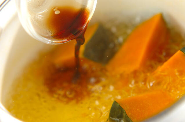 しょうゆを加え、鍋に落とし蓋をして、火を強めて煮汁が少なくなるまで煮る。火を止め、粗熱が取れたらすり黒ゴマを加えて和える。