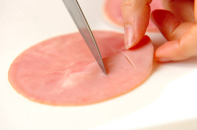 ハムは真ん中に幅5mmの切り込みを入れる。