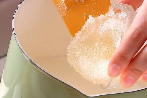 小鍋に牛乳を入れて火にかけ、煮立ったら火を止めて、ふやかしたゼラチンを加えしっかり溶かし、粗熱を取る。