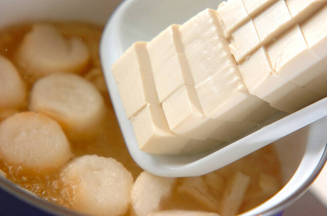 鍋にだし汁を入れて中火にかけ、煮立ったら油揚げ、麩を加え、再び煮立ったら豆腐を加えてみそを溶き入れる。刻みネギを加えて火を止め、器に注ぎ分ける。