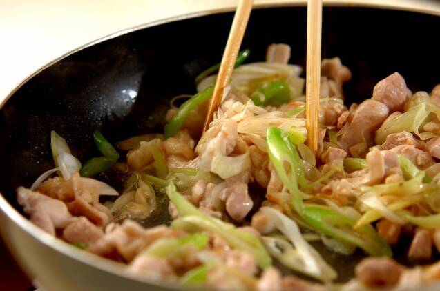 鶏とネギの炒めもの