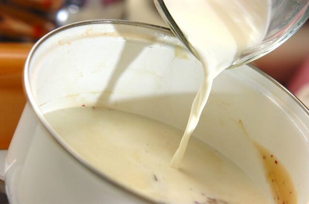 ミキサーかブレンダーにかけ、鍋に戻して牛乳を加えて中火にかける。塩コショウで味を調える。器に注ぎ、ドライパセリを散らす。