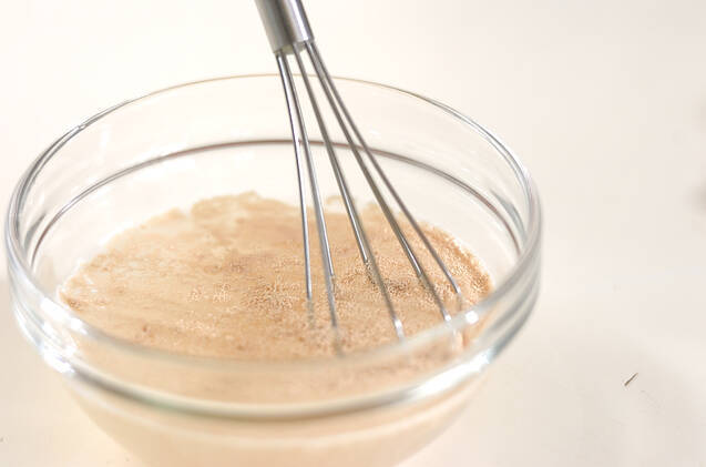 インスタントドライイーストをぬるま湯に入れて混ぜ合わせる。