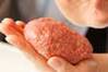 (1)の1/4量を手でまとめ、キャッチボールをする要領で空気抜きをし、形を整える。