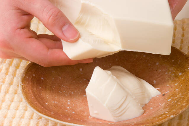 豆腐はサッと水を通し、手で4等分に粗くくずし、器に入れる。