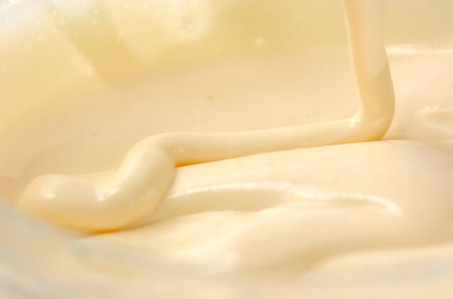 1を湯せんから外し、ハンドミキサーでリボン状になるまで泡立てる。リボン状になったら、泡だて器に持ち替えてゆっくりと混ぜ、キメを整える。