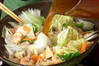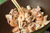 ニンジン、白菜、水煮タケノコを炒め合わせ、<合わせ調味料>を加える。