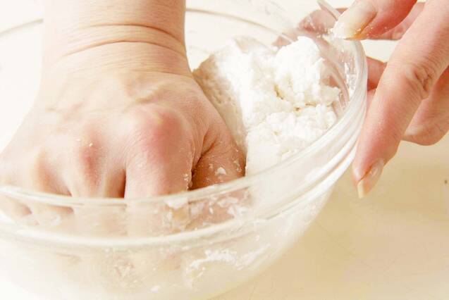 ボウルに白玉粉を入れ、水を少しずつ加えながら耳たぶ位の柔らかさに練る。(水は120~150ml位)