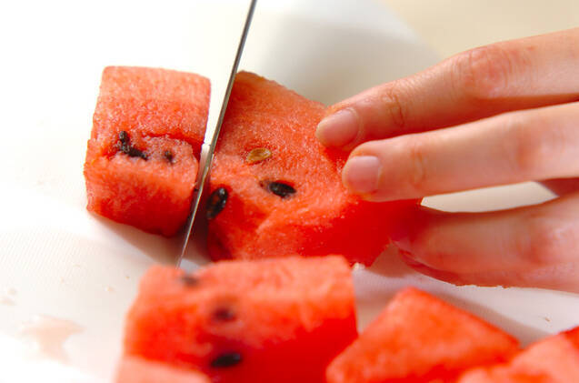 スイカは種と皮を取り除き、ひとくち大に切る。