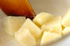 鍋にジャガイモを入れ、水をひたひたまで加えて中火にかける。そのまま柔らかくなるまで7~8分ゆでる。ゆで上がる2~3分前にカリフラワーを加え、ゆで汁を捨てる。