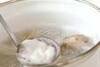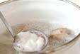 鍋に水、貝、昆布を入れて中火にかけ、煮立つ直前に昆布を取り出してアクを取る。